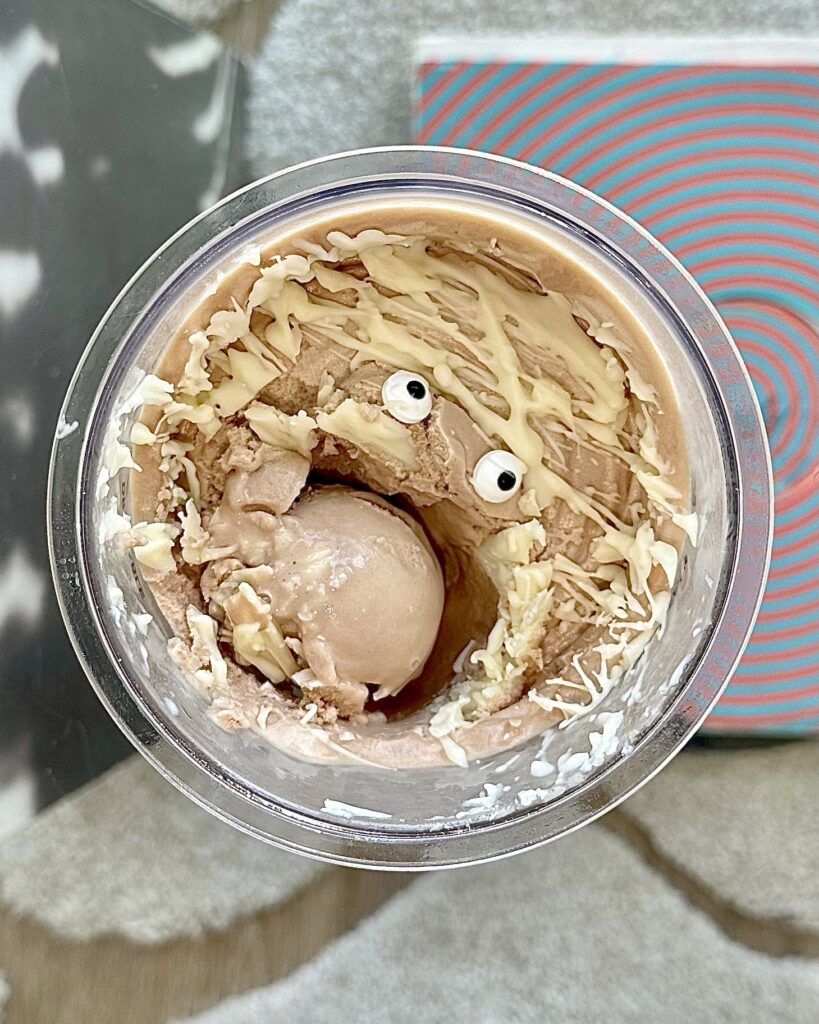 This Under Wraps Protein Ice Cream is exactly the kind of Halloween treat I live for: spooky, playful, and usable in your high-protein life. You get the fun of decorating a mummy, the delight of a crackly white chocolate shell, and the satisfaction of a creamy, chocolate-blue base underneath.